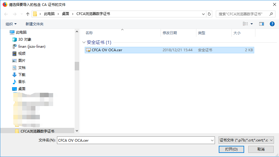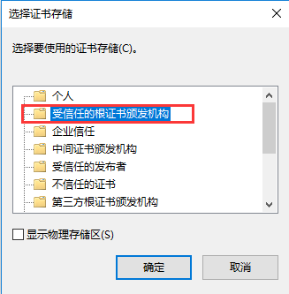 5、选择“受信任的根证书颁发机构”,点击“确定”
